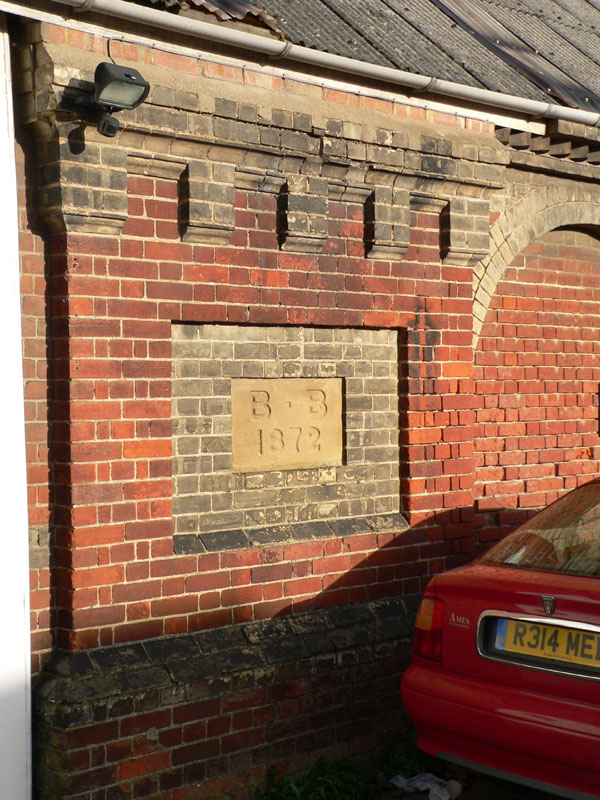 BB refers to Robert and George Boby who were partners in the Station Works. (George Burlingham's maltings was adjacent.) Robert and George Boby built a beer finings factory here, opened in phases after 1872, with the addition of vinegar, barrel making, and a variety of other processes. |
