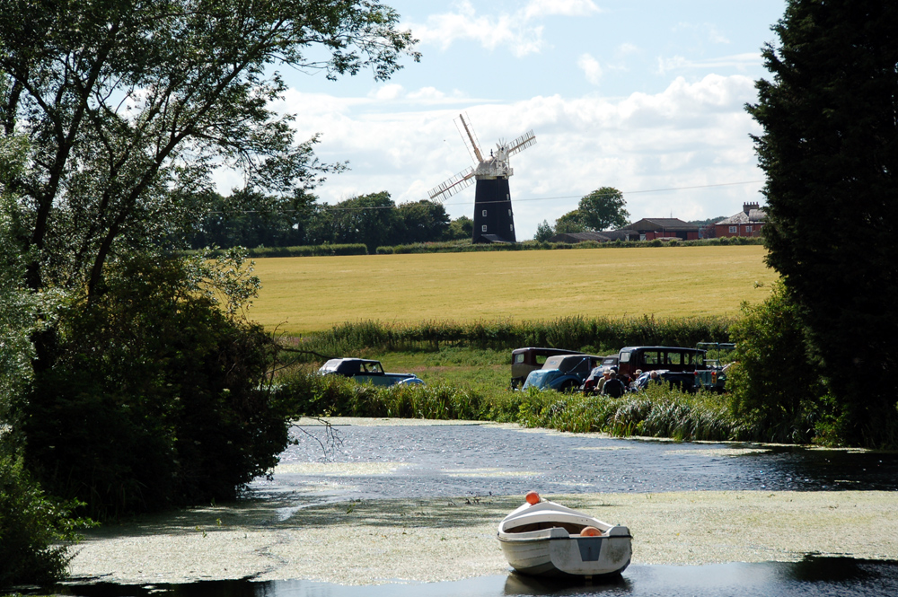 View from rear of mill, across Pakenham Mill Pond to Pakenham Fen Pakenham windmill can be seen on the ridge |