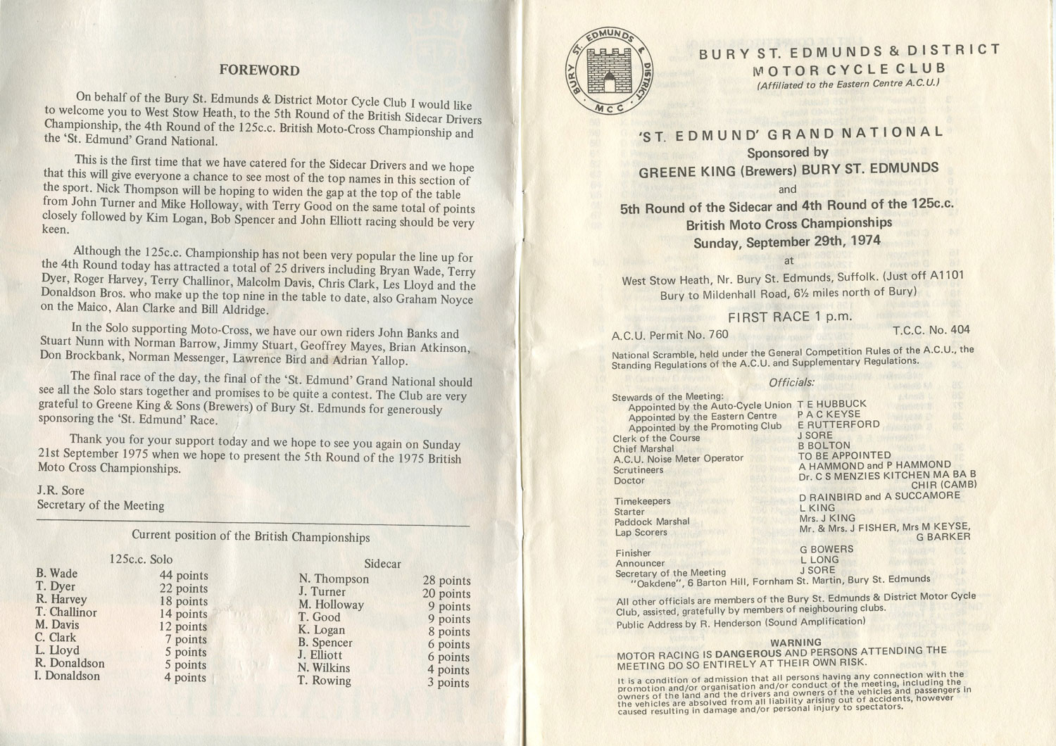 "St Edmund Grand National 1974" is a leaflet in the author's collection |