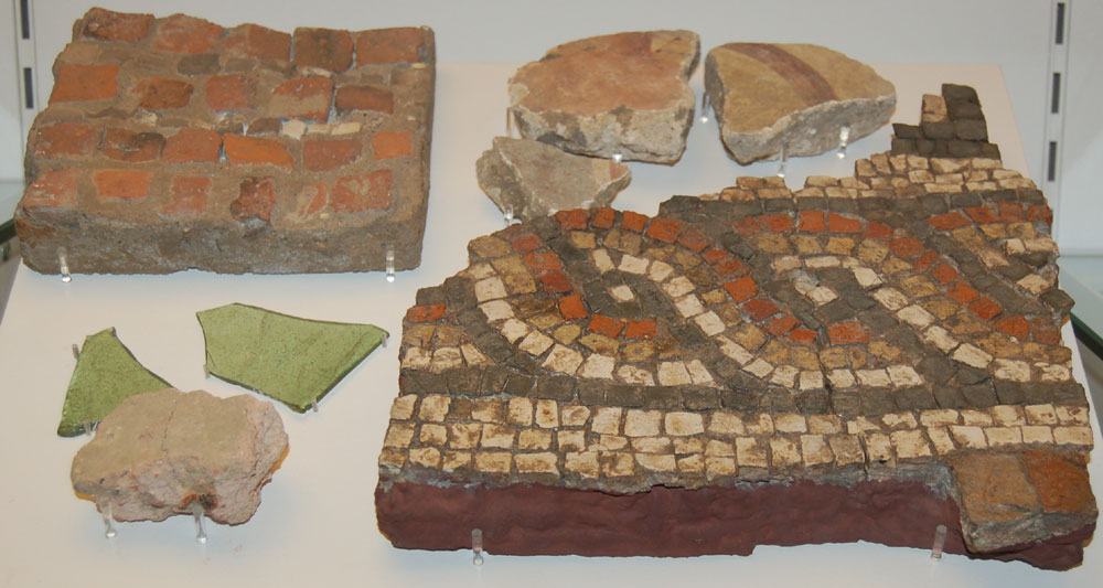 An assortment of Roman mosaics from local Roman villas, such as those at Icklingham and Wordwell. |