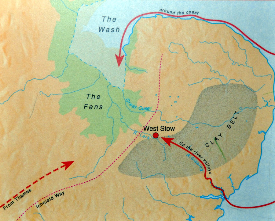 Unfortunately, population numbers are impossible to calculate accurately as so few cemeteries of the period have been totally excavated. A nationally important Anglo-Saxon cemetery has just been excavated at Eriswell, within the site of RAF Lakenheath. The excavations took place in 1997 and the site is believed to date from AD500 - 600. A major find has been a warrior buried complete with his horse and all its harness. Around 200 burials were expected to be excavated.